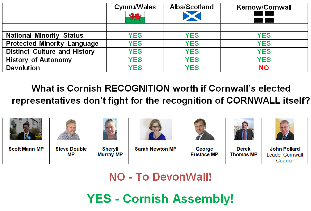 Without a new democratic settlement to deliver devolution, a distinct Cornish administration, then no matter how Cornwall Council ‘dress it up’ it isn’t Cornish devolution at all. It’s merely watered-down English devolution that ensures Cornwall and the Cornish remain relegated to the backyard of someone else’s region.